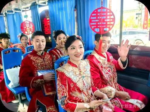 近年来,菏泽市牡丹区以婚俗改革为总牵引,高质量打造“丹助缘”婚俗改革品牌,通过举办集体公交婚礼等有创意的婚礼形式,倡导“新事新办”,树立低碳文明的婚俗新风。