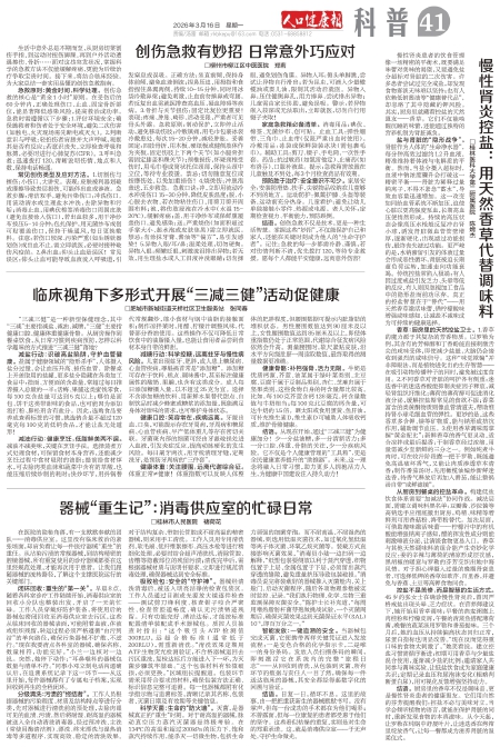 常见创伤类型及应对方法。1.切割伤与擦伤:小伤口,大讲究。表现:皮肤被利器划破或摩擦导致表层损伤,可能伴出血或渗液。急救步骤:清洁双手,避免污染伤口;冲洗伤口,用流动清水或生理盐水冲洗,去除异物和污垢;消毒止血,用碘伏棉签消毒伤口周围皮肤(避免直接涂入伤口),若出血较多,用干净纱布按压5-10分钟;包扎保护,用无菌纱布或创可贴覆盖伤口,保持干燥通风,每日更换敷料。注意:若伤口较深、污染严重(如生锈铁器划伤)或出血不止,需立即就医,必要时接种破伤风疫苗。2.鼻出血:仰头止血是误区!常见误区:仰头止血可能导致血液流入呼吸道,引发窒息或误吸。正确方法:坐直前倾,保持身体前倾,避免血液倒流;捏鼻压迫,用拇指和食指捏住鼻翼两侧,持续10-15分钟,同时用冰袋冷敷鼻梁;避免刺激,止血前勿擤鼻或弯腰,若反复出血需就医排查高血压、凝血障碍等疾病。3.骨折与关节扭伤:固定比复位更重要!表现:疼痛、肿胀、畸形、活动受限,严重者可见骨头外露。急救原则:制动保护,立即停止活动,避免移动伤肢;冷敷镇痛,用毛巾包裹冰袋冷敷患处,每次15-20分钟,减轻肿胀。妥善固定:四肢骨折,用木板、硬纸板或健侧肢体作为夹板,固定伤肢上下两个关节(如小腿骨折需固定膝盖和踝关节);颈椎损伤,怀疑颈椎受伤时,用毛巾卷成筒状托住颈部,保持头颈中立位,等待专业救援。禁忌:切勿随意复位或按摩伤处,以免加重损伤!4.烧烫伤:冲脱泡盖送,五步救急。急救口诀:冲,立即用流动冷水冲洗伤口15-30分钟,降低皮肤温度;脱,小心脱去衣物,若衣物粘住伤口,用剪刀剪开周围布料;泡,将伤肢浸泡在冷水中(水温15-20℃),缓解疼痛;盖,用干净纱布或保鲜膜覆盖伤口,避免感染;送:严重烧伤(如面积超过手掌大小、起水泡或皮肤焦黑)需立即就医。禁忌:勿涂抹牙膏、酱油等“偏方”,易引发感染!5.异物入眼/耳/鼻:温柔处理,切勿硬掏。异物入眼:频繁眨眼,刺激流泪排出异物;若无效,用生理盐水或人工泪液冲洗眼睛;切勿揉眼,避免划伤角膜。异物入耳:侧头单脚跳,尝试让异物自行滑出;若为昆虫,可滴入少量橄榄油或婴儿油,限制其活动后就医。异物入鼻:压住健侧鼻孔,用力擤鼻,尝试排出异物;儿童需由家长协助,避免误吸。警示:若异物嵌入较深或无法取出,立即就医,切勿自行用镊子夹取!